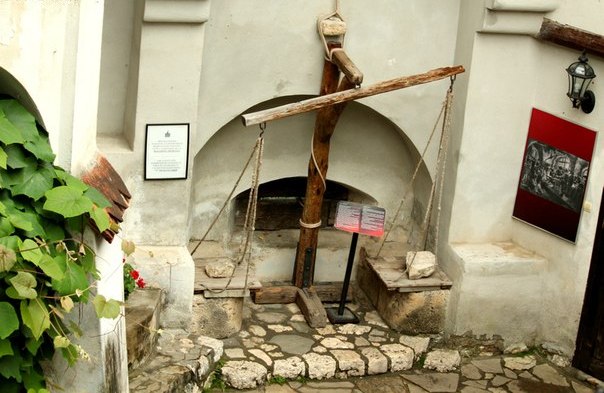 По всей видимости это весы для взвешивания душ грешников, на одну чашу сажали человека, на другую клали Библию, и если кто вдруг весил меньше книги - того сразу на костёр...
