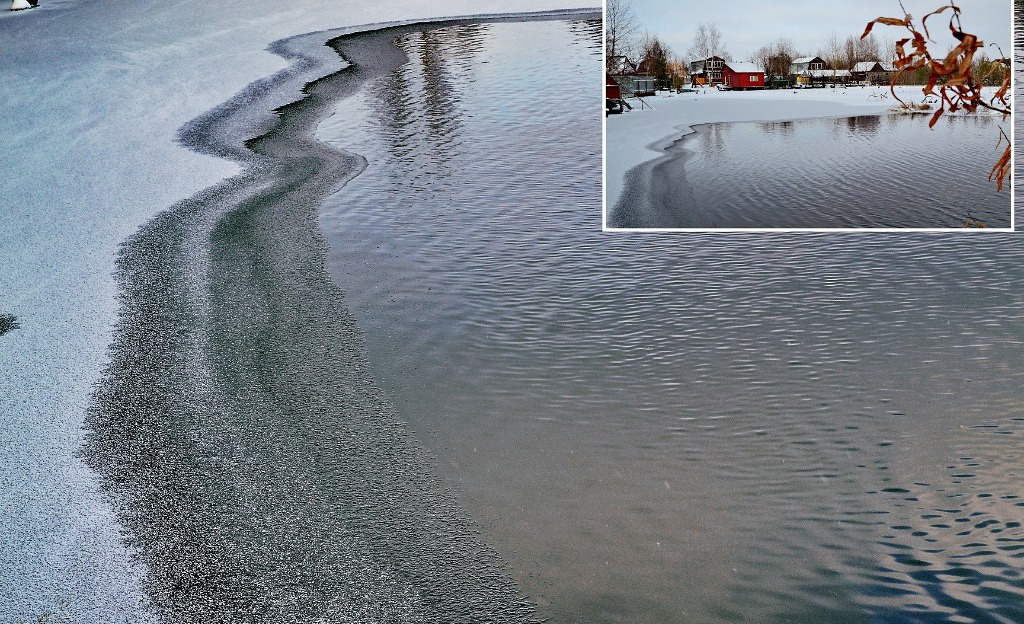 Пруд на даче. подпитывается теплой водой с грэсовского водохранилища. Скоро весь замерзнет.