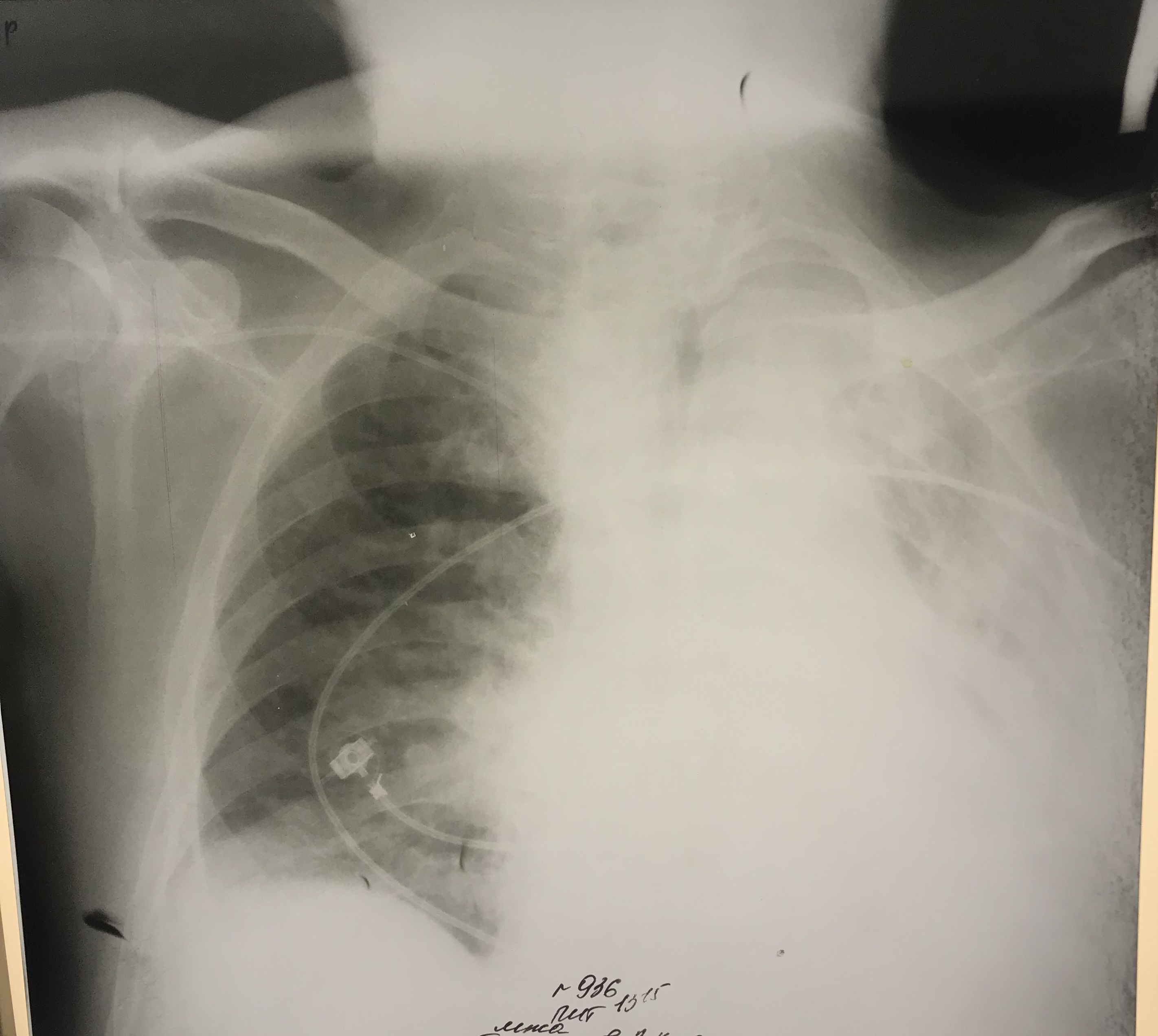 Ателектаз слева. Гнойный эндобронхит с закупоркой бронхов гноем.