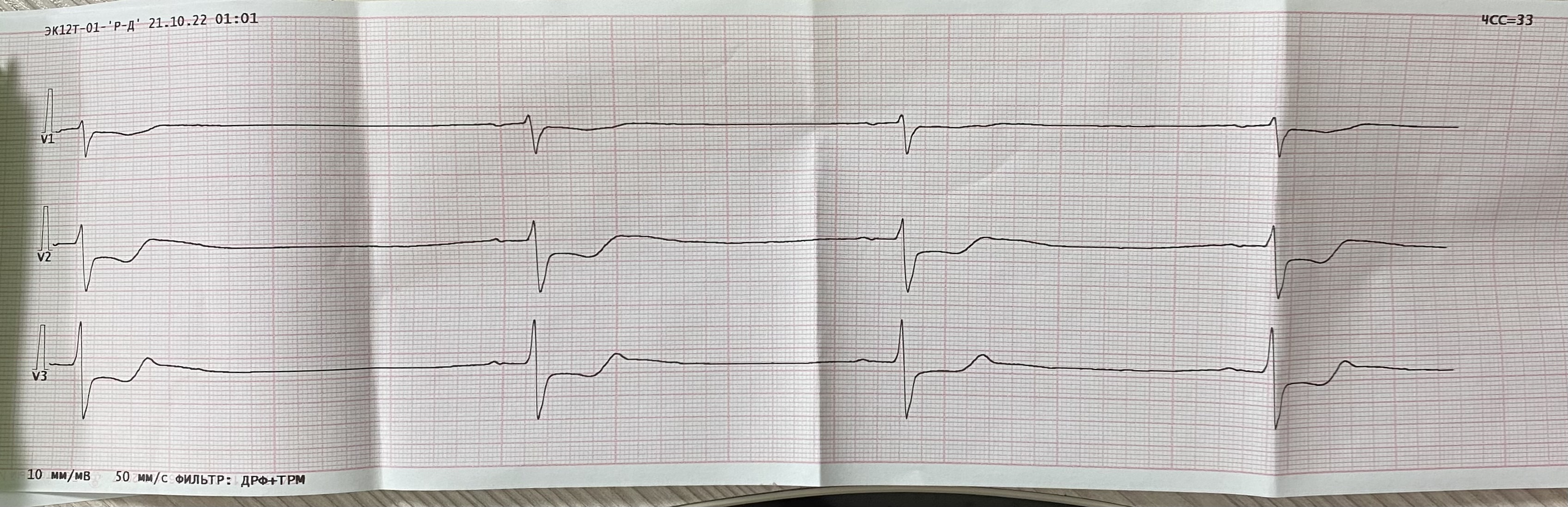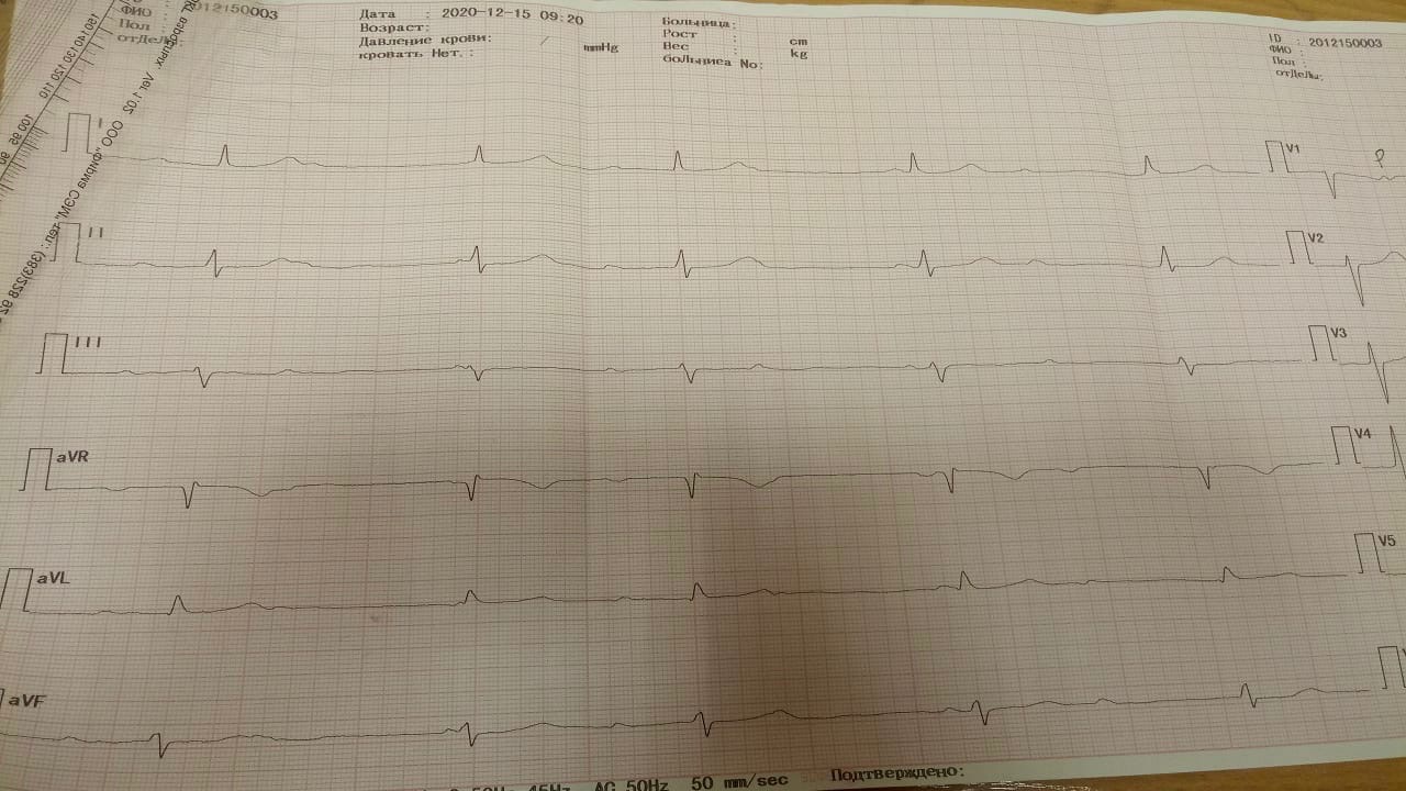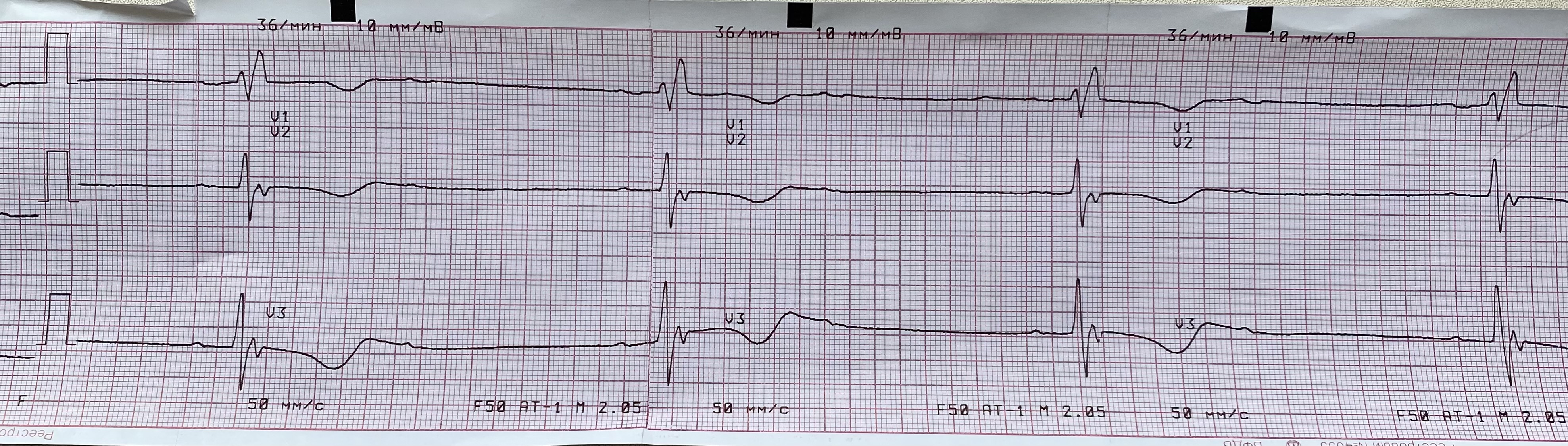 Ж 96 лет. Ав блокада 2:1. Инфаркта здесь нет.