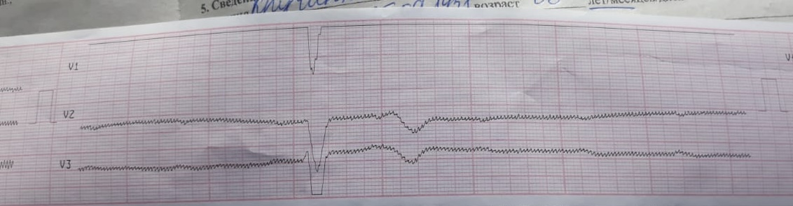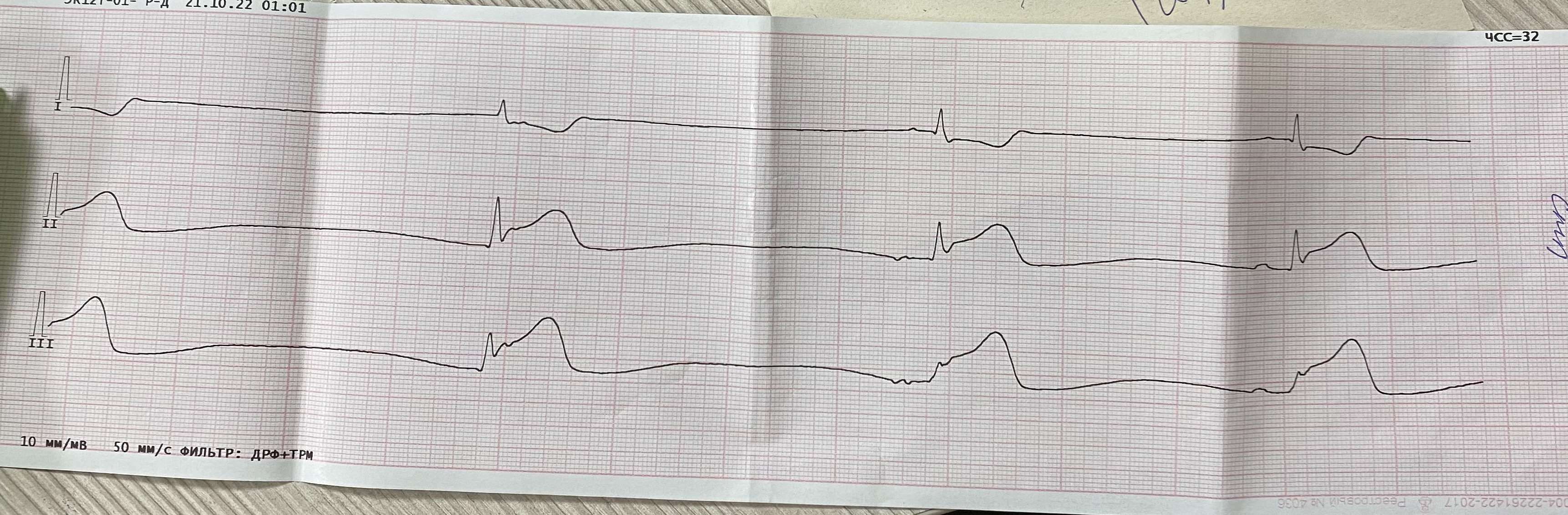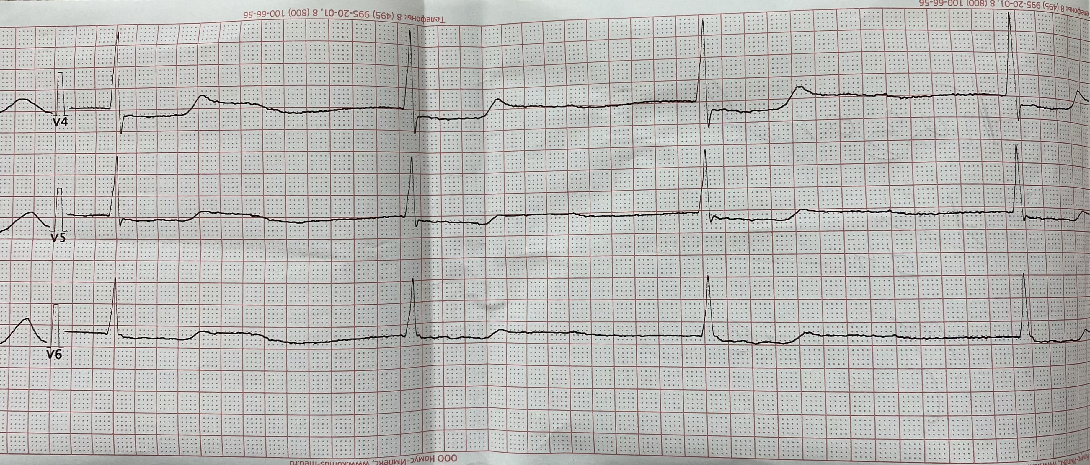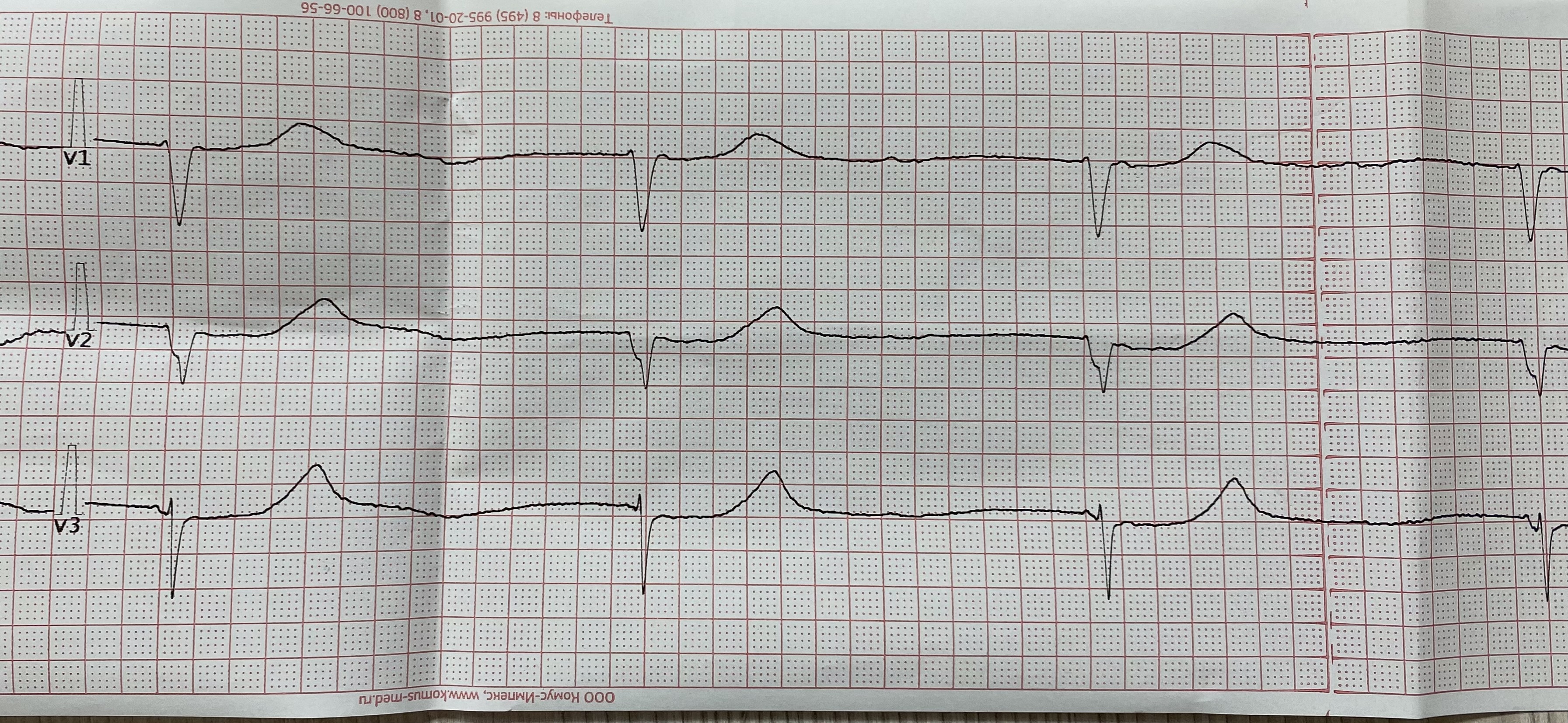 Ж 96 лет. Ав блокада 2:1. Инфаркта здесь нет.