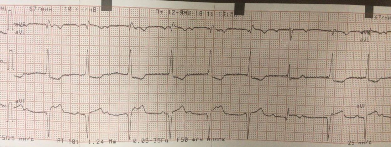 16.13 – в стандартных полная с учащением ритма (вводили атропин?) В усиленных 2:1 В 16-14 - В грудных полная с замещающим ритмом из разных источников, есть и аберрантные В 17.33 – АВ блокада 2 степени с Венкебахом на первом скане, на втором 2:1