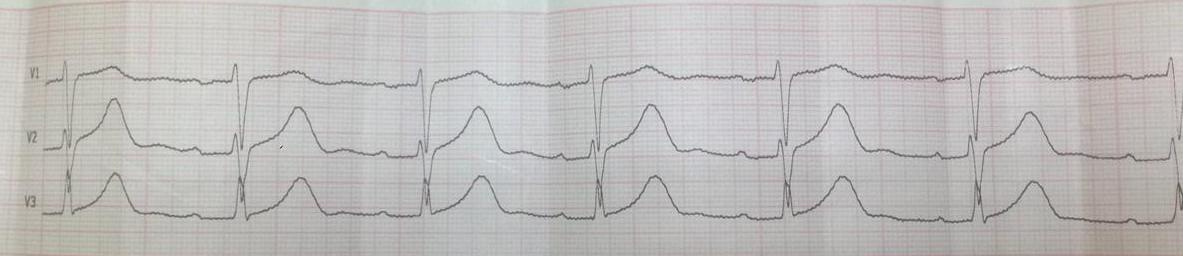Здесь даже не элевация, а большой широкий Т, самое начало инфаркта миокарда