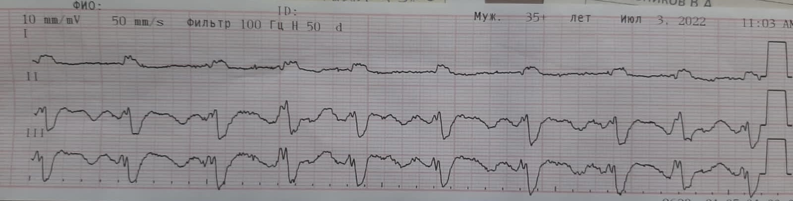 Волн FF не видно, но на КАГ видно как предсердия работают в разы чаще чем желудочки. Обсуждалось здесь https://vk.com/club84409679?w=wall-84409679_10798%2Fall