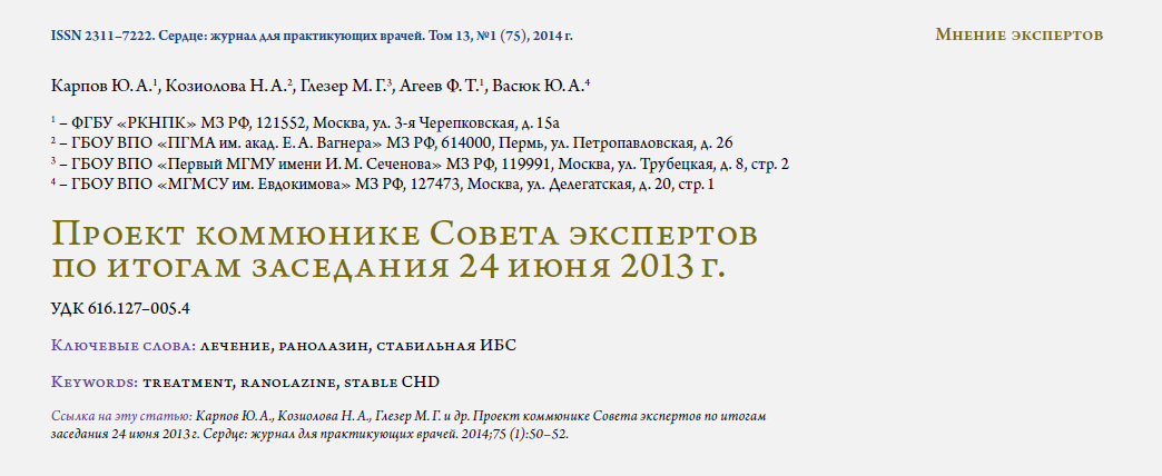 Пилотное исследование с Ранолазином по купированию пароксизмальной формы фибрилляции предсердий читайте в журнале Сердце: журнал для практикующих врачей, 2013г., №2