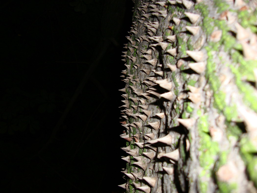 Это бутылочное дерево, или еще - "дерево пьяница", по форме ствола, похожего на бутылку. Тоже с шипами, тоже колючее.