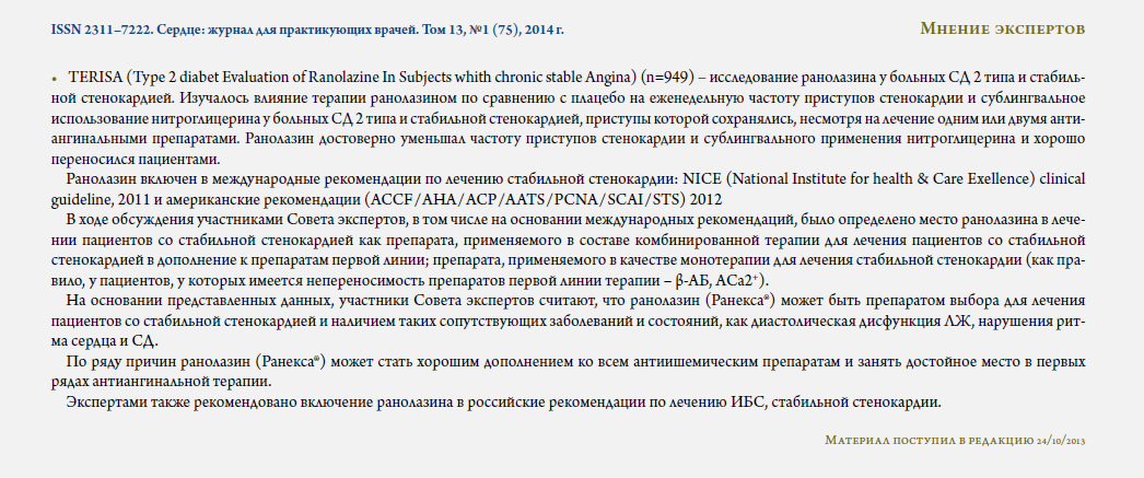 Заголовок сообщения: Ранолазин наступает.